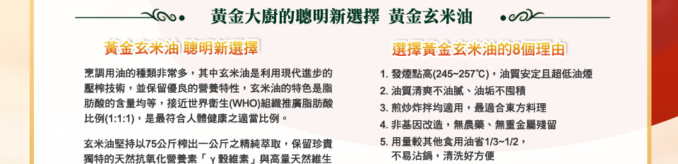 健康廚房黃金玄米油 聰明新選擇